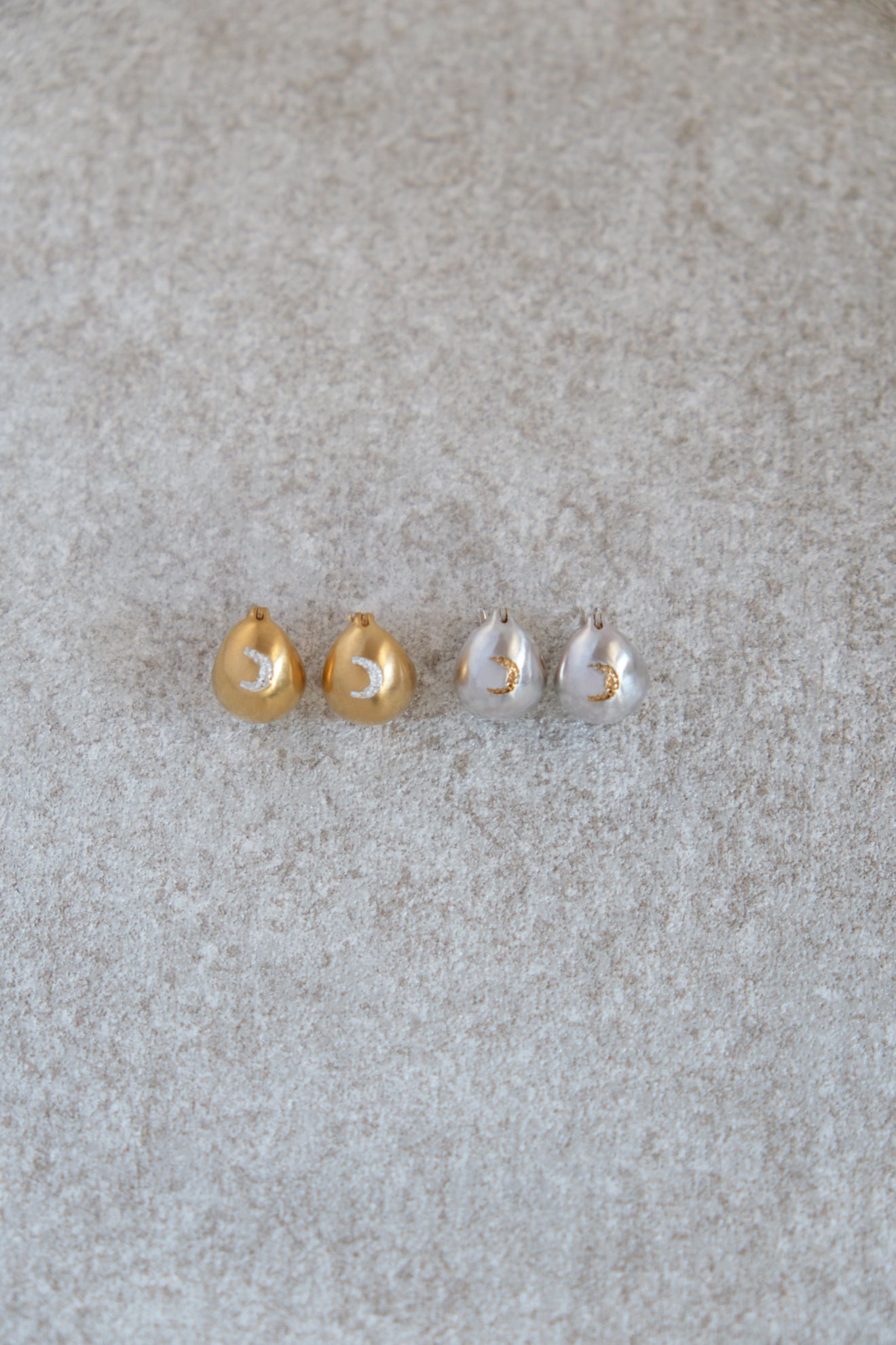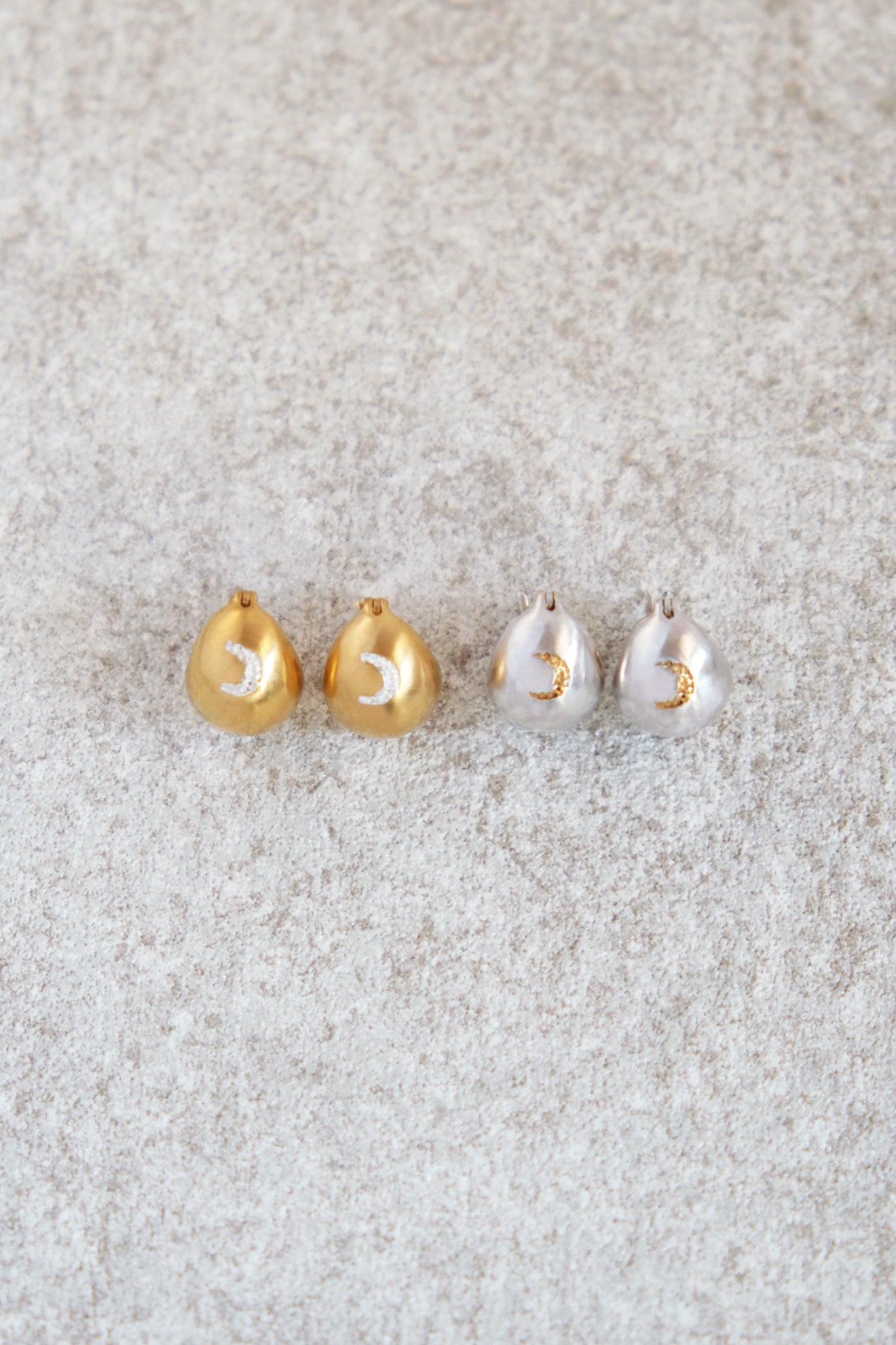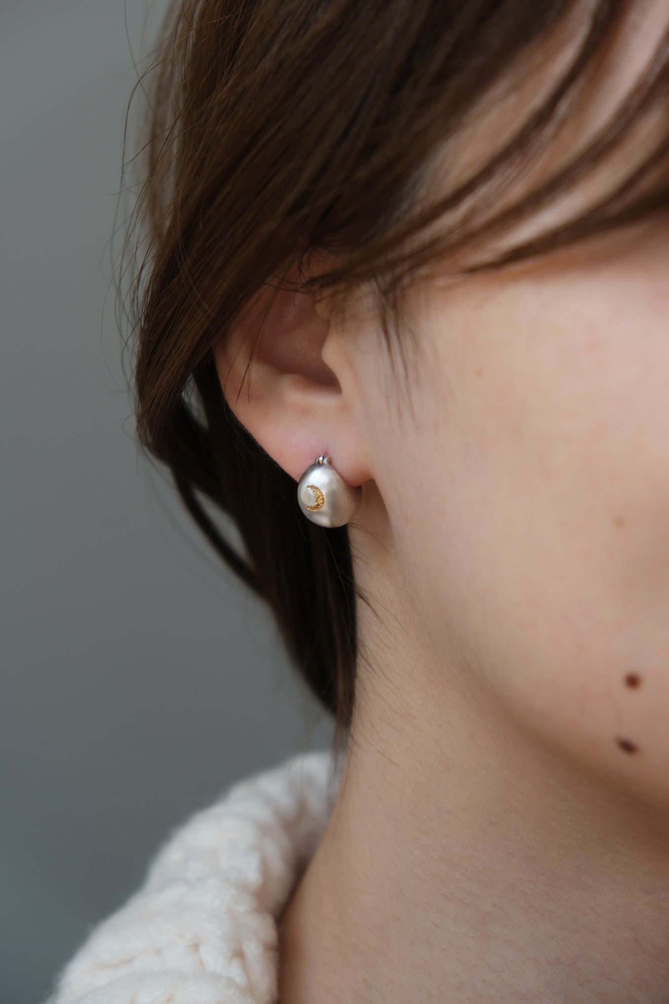 三日月の形に手彫りしたシンボルが耳元を彩ります。