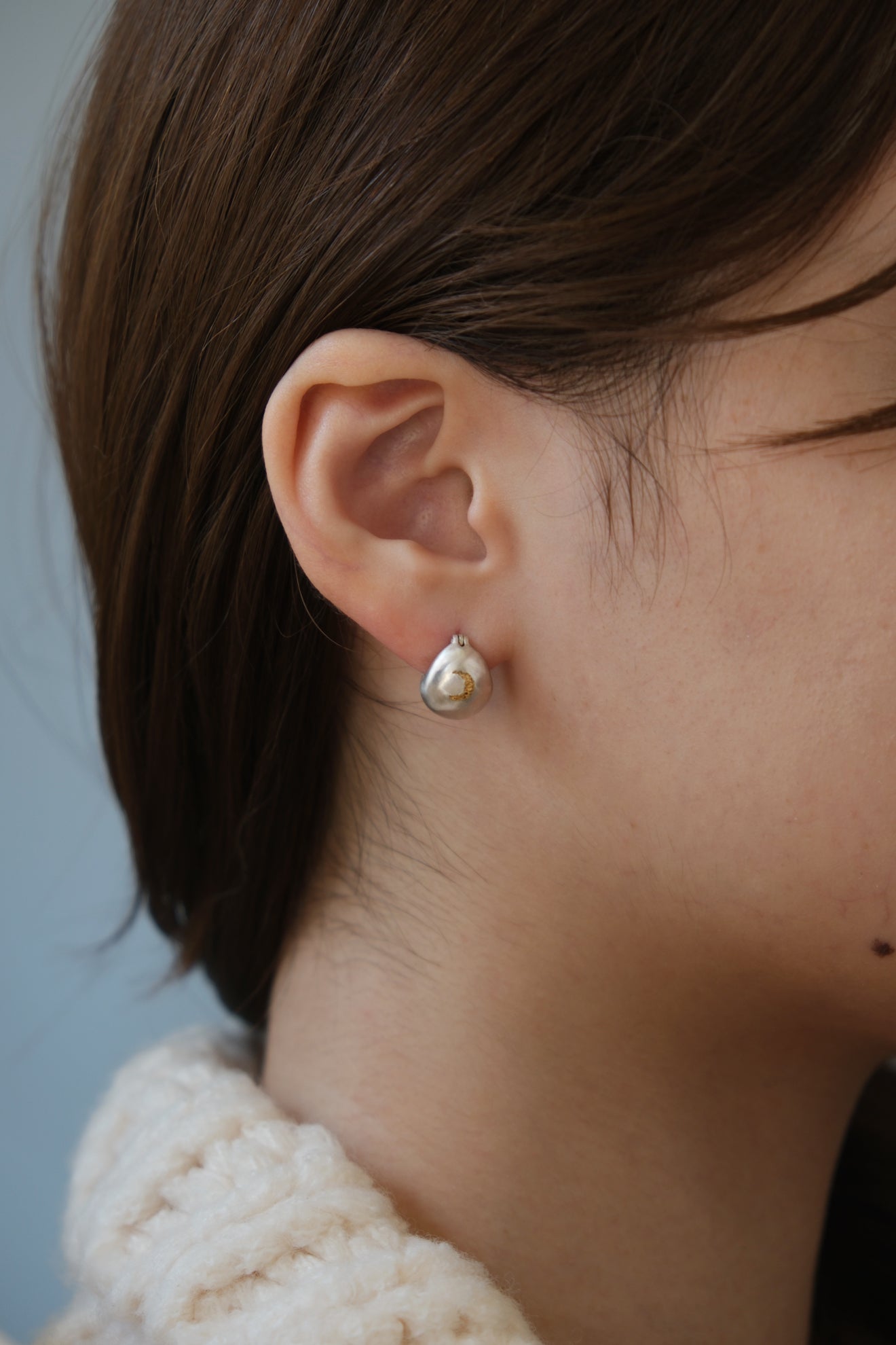 ぷっくりとした丸みのあるフォルムに仕立てたピアスは、