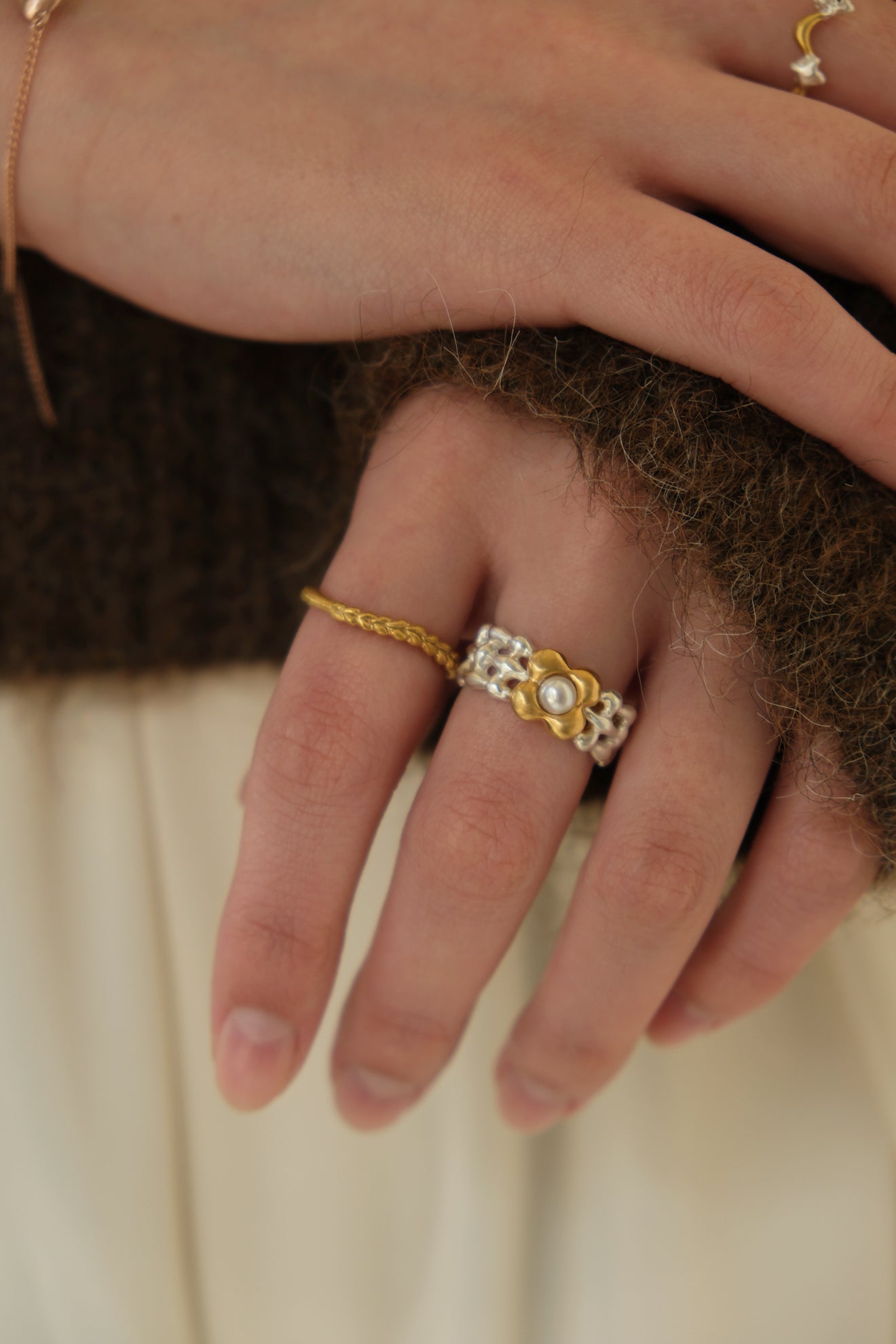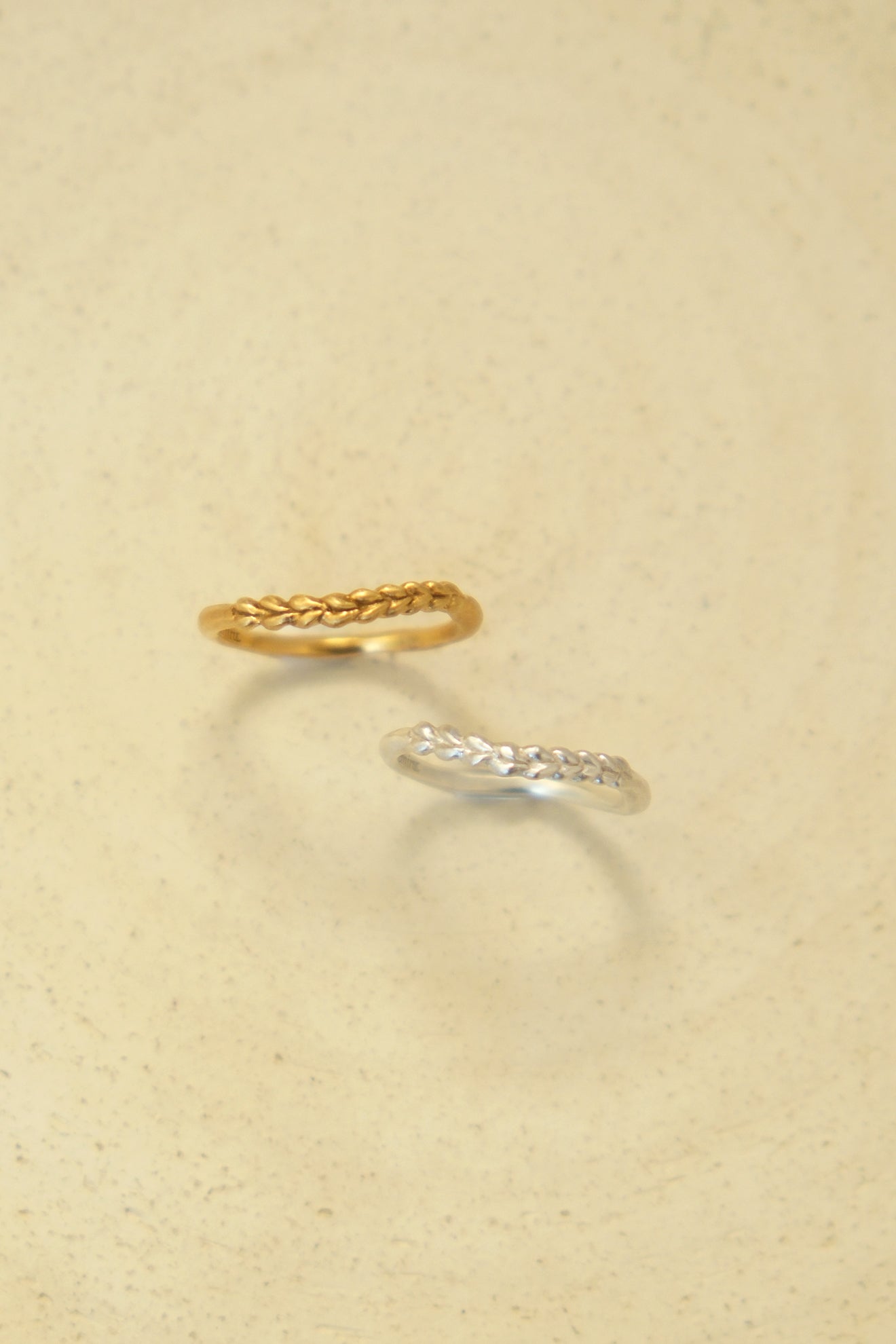 ニットの編み模様をボディに施したデザインリング。