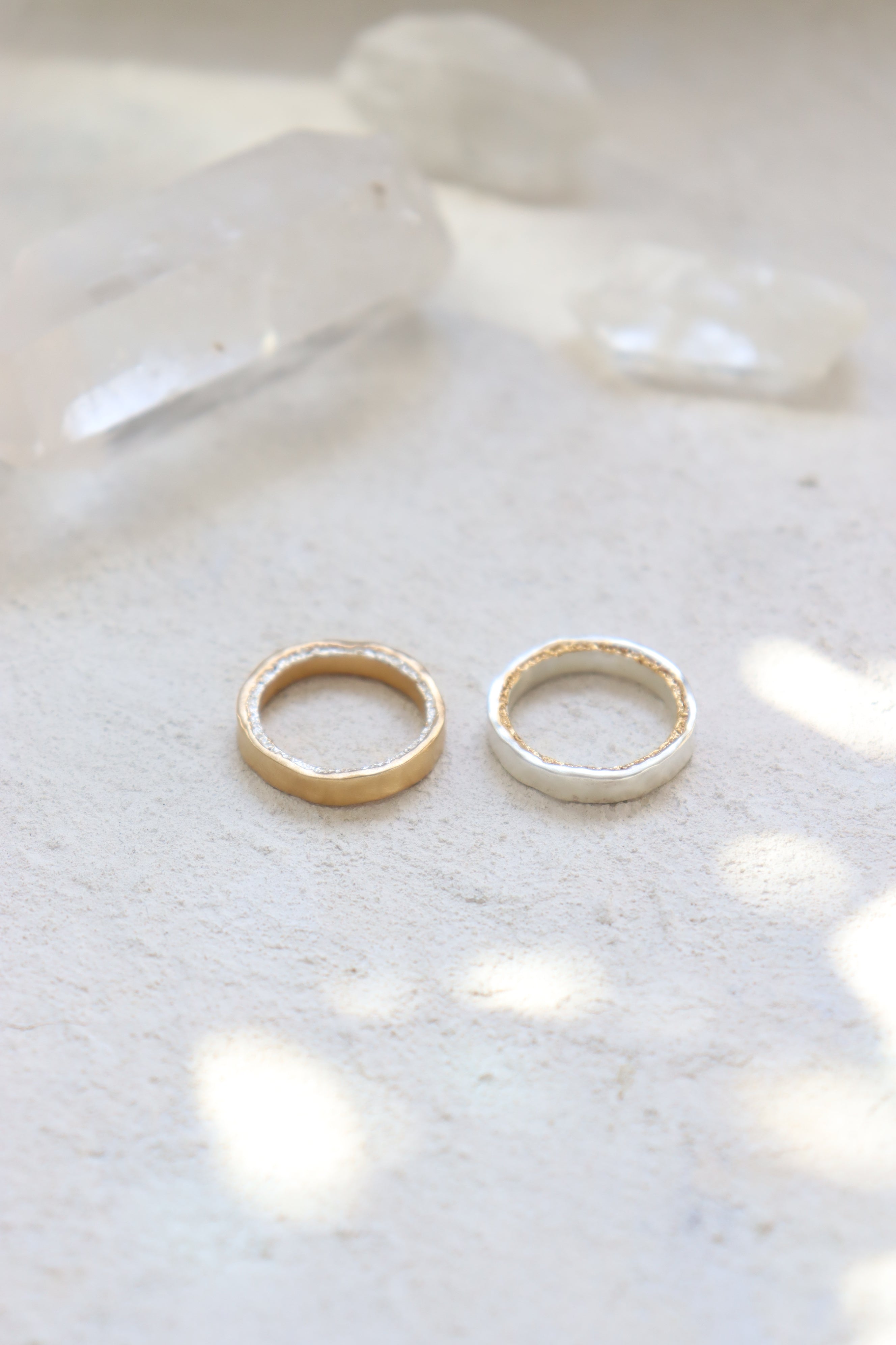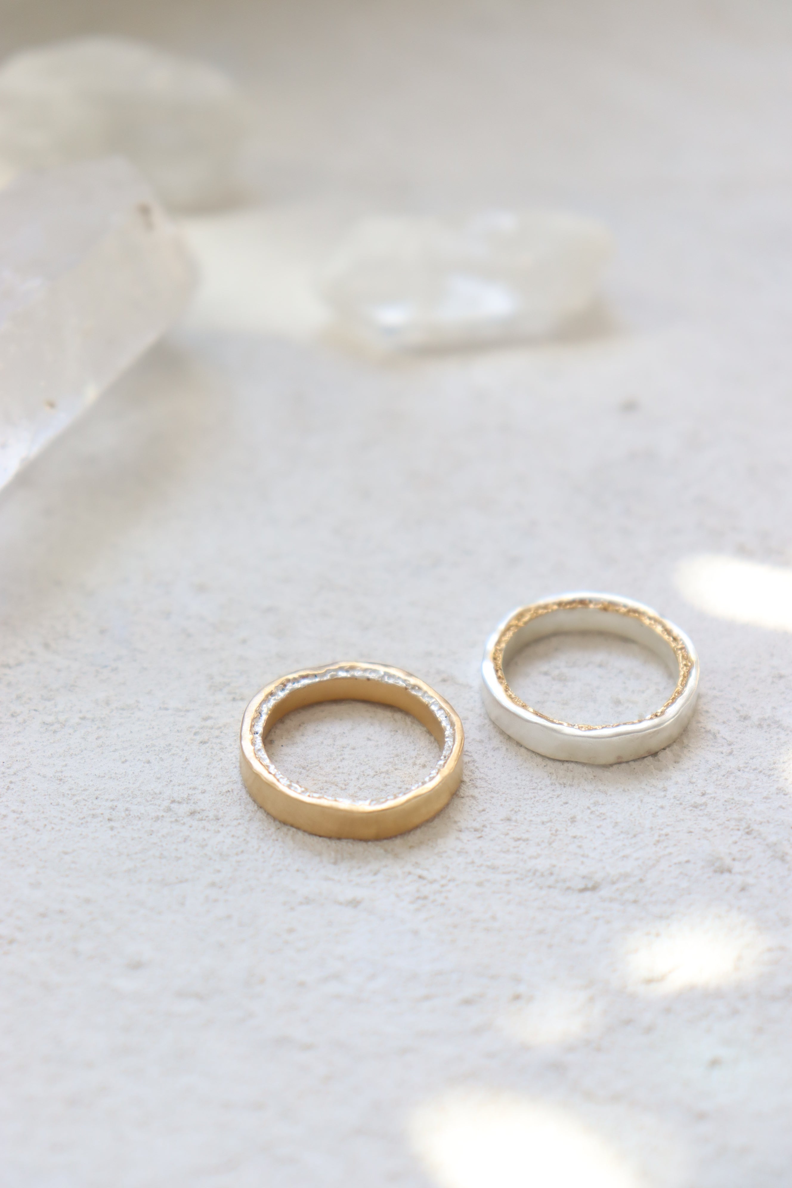 内側をテーマにしたシリーズで、リングの内側に細かい粒のテクスチャーが入り、さり気なく2toneカラーがポイントになっております。